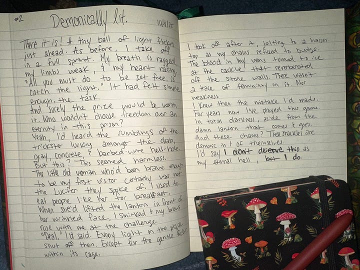 We’ve had more than a dozen submissions each day so I’ve done my best to pick a few for reach day but will highlight all of those who are participating and you should go check out their Substack Notes or visit our daily Substack Chat to read the contributions: