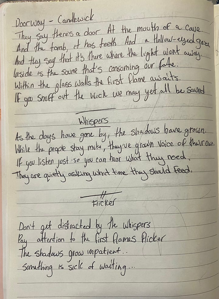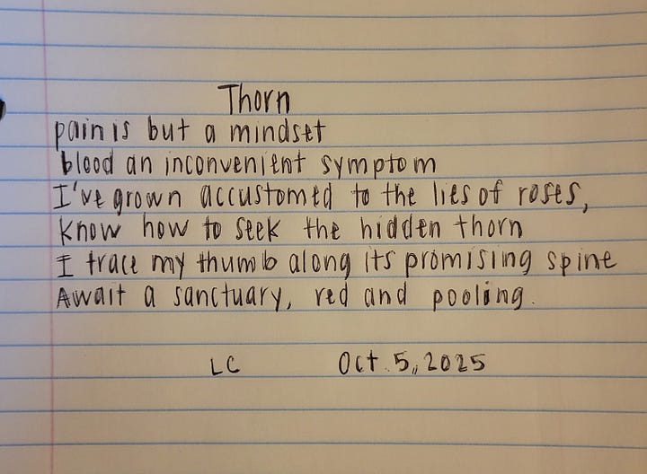 We’ve had more than a dozen submissions each day so I’ve done my best to pick a few for reach day but will highlight all of those who are participating and you should go check out their Substack Notes or visit our daily Substack Chat to read the contributions: