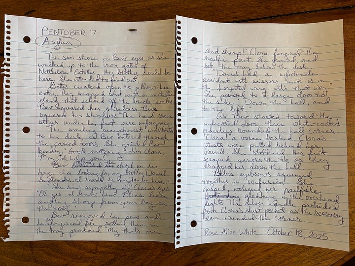 -Everyone involved has the same goal: write, pen to paper, with the inclusion of a single word/theme.