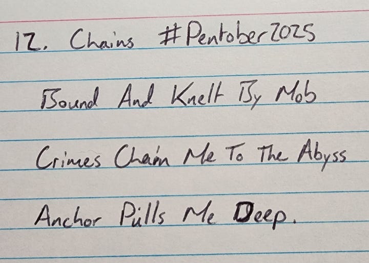 There’s nothing like a community coming together to share in a common goal. And special shout out to those who are participating every single day. Especially to those who have managed to string each word together to create a continuing story! I wish I had thought of that back on day one! You are all doing so brilliantly and I can’t wait to see the many pages of all this in the end. 👀